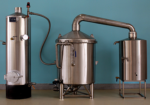 商品結(jié)構(gòu):分體式蒸餾設(shè)備。包括鍋爐、酒料桶和冷卻器